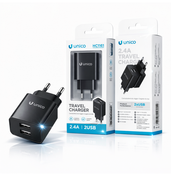 Il caricabatteria da casa di Unico rappresenta una soluzione affidabile ed efficiente per l'alimentazione quotidiana dei tuoi dispositivi elettronici. Grazie alla presenza di una doppia porta USB-A, questo alimentatore permette di ricaricare contemporaneamente due apparecchi, ottimizzando i tempi e garantendo un'uscita d'energia sempre stabile. Realizzato in materiale ABS di alta qualità, il dispositivo vanta una struttura resistente all'usura e alle cadute, assicurando una lunga durata nel tempo e una protezione costante per i circuiti interni, il tutto racchiuso in un design bianco essenziale e professionale.
