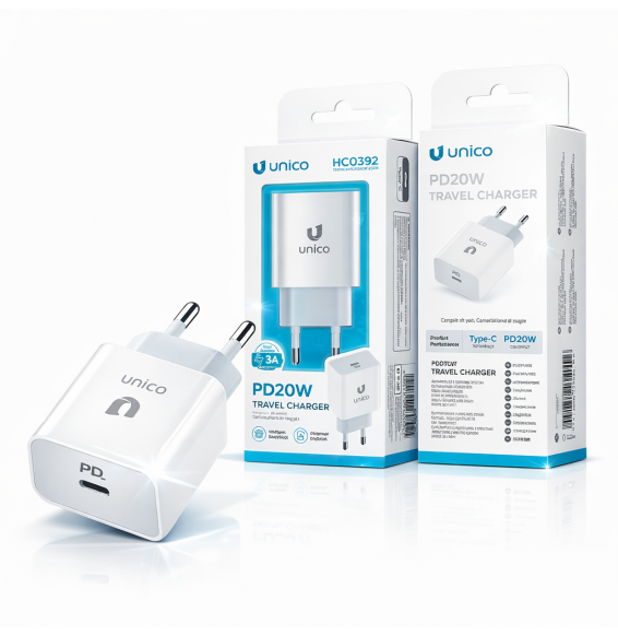 Il caricabatterie domestico HC0392 di Unico rappresenta l'eccellenza nella ricarica rapida per i dispositivi di nuova generazione. Dotato di una porta USB Type-C con tecnologia Power Delivery da venti watt, questo alimentatore garantisce un'uscita d'energia stabile e performante, ideale per ripristinare la batteria di smartphone, tablet e altri gadget digitali in tempi ridotti. Realizzato in materiale ABS di alta qualità nel colore bianco, il dispositivo combina un'estetica pulita con una struttura resistente, studiata per durare nel tempo e resistere all'usura quotidiana in casa o in ufficio.