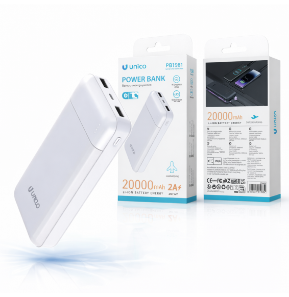 il power bank di unico da ventimila milliampere rappresenta la riserva di energia definitiva per chi necessita di affidabilita e potenza durante i viaggi o le lunghe giornate fuori casa. caratterizzato da una scocca robusta in abs e policarbonato bianco questo caricabatterie portatile offre un ampia capacita che permette di ricaricare piu volte smartphone tablet e altri dispositivi elettronici. grazie al suo design compatto e funzionale il dispositivo garantisce una disponibilita di carica costante eliminando il rischio di rimanere con la batteria scarica nei momenti di maggiore necessita.